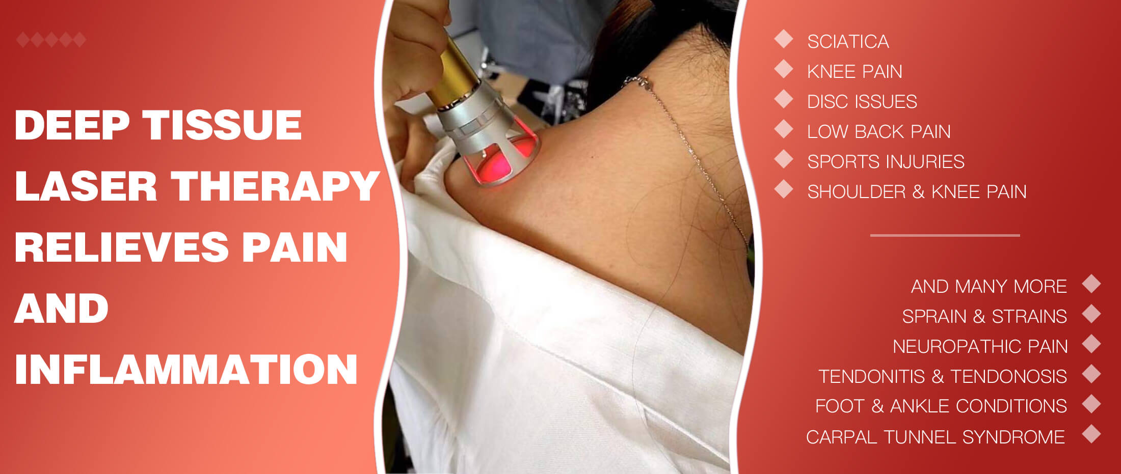 Deep Tissue Class 4 Laser is also called Photobiomodulation. Photobiomodulation therapy is A drug free alternative, painless, no side effect.